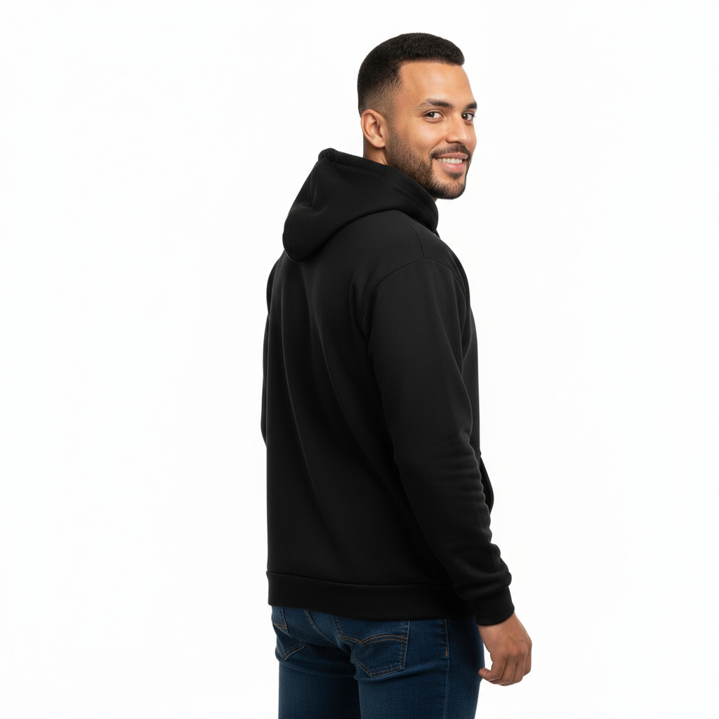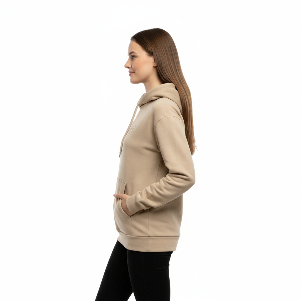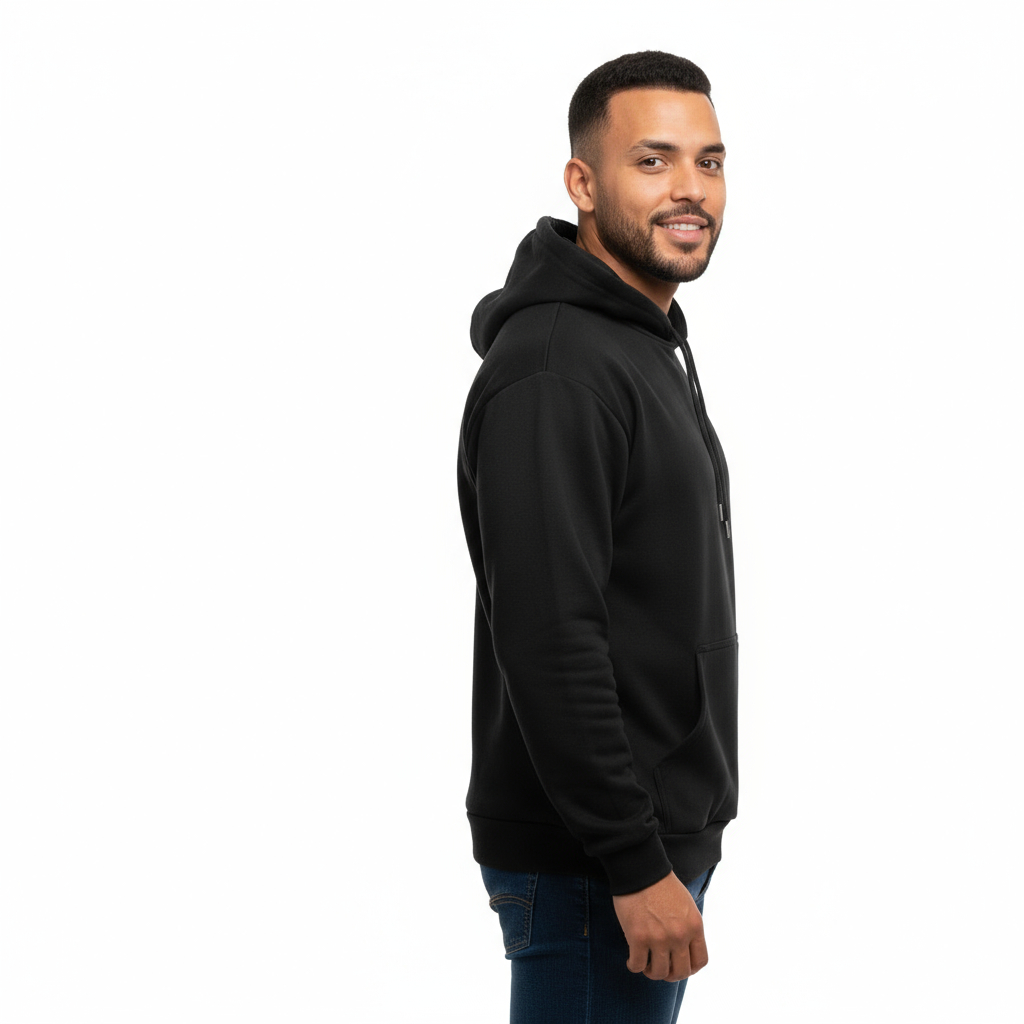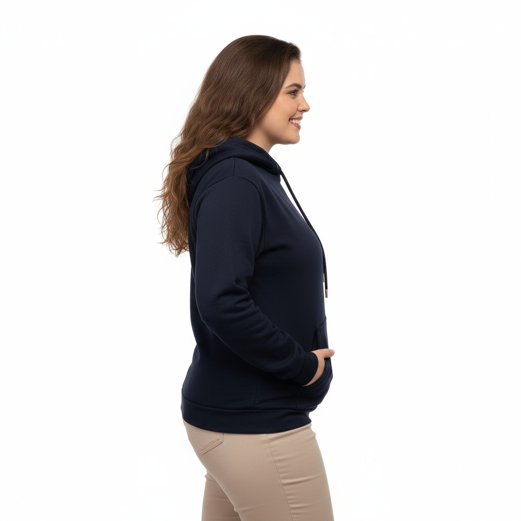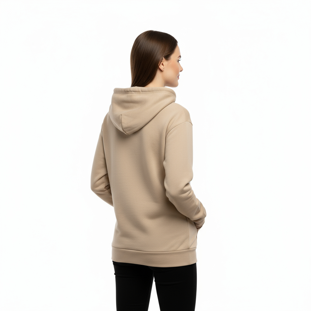 Buzo tipo canguro sin cierre, con capota, bolsillo en la parte inferior delantera, puños y fajón en contraste tejidos, tela suave al tacto, con un estampado.