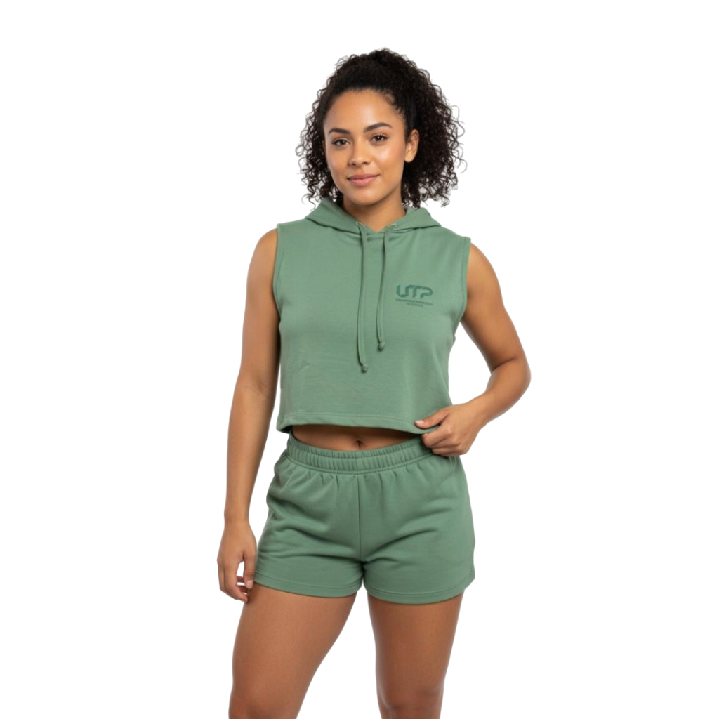 Conjunto casual y versátil de blusa con capota y short corto, perfecto para sentirte cómoda y con estilo en cualquier momento del día.