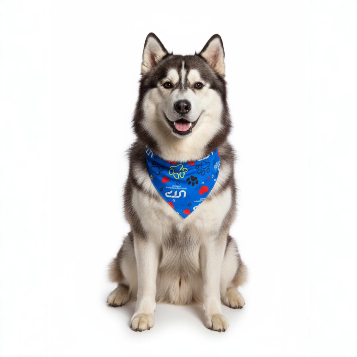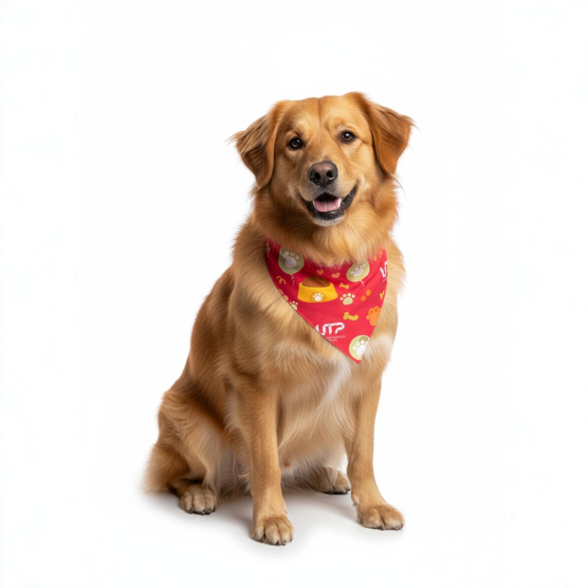La pañoleta para mascotas tiene un diseño con el logotipo de la UTP hecho en técnica de sublimado y tela antifluido que facilita su limpieza y duración.